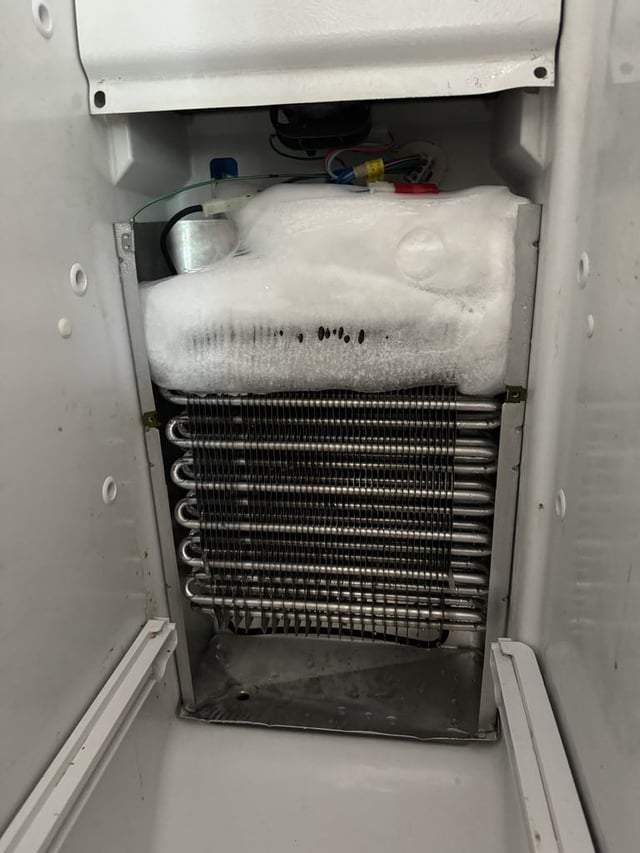 There is excessive frost or ice accumulation in the freezer compartment, which may affect performance. This could be due to a malfunctioning defrost heater, faulty thermostat, or blocked air vents.